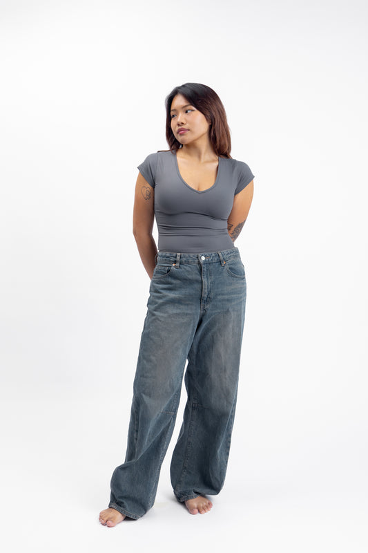 High Neck Capped Sleeve in Charcoal