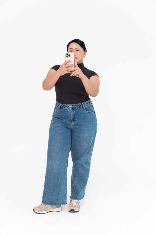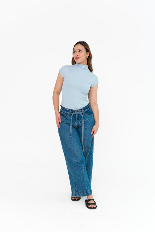 High Neck Capped Sleeve in Blue