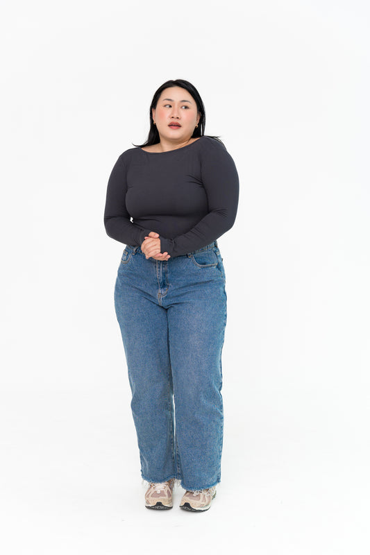 Boat Neck Long Sleeve in Charcoal