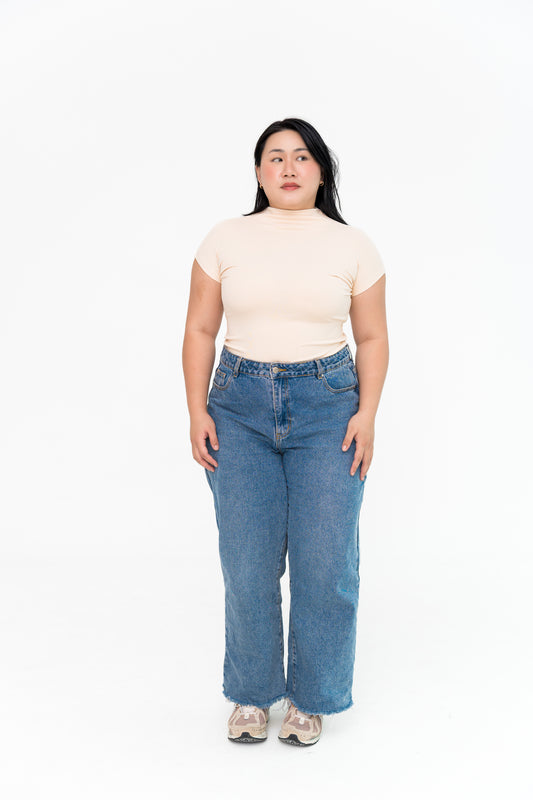 High Neck Capped Sleeve in Nude