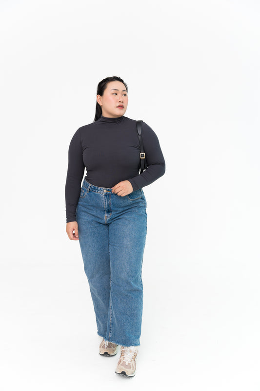 High Neck Long Sleeve in Charcoal