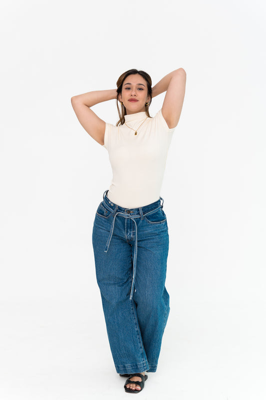 High Neck Capped Sleeve in Off-White