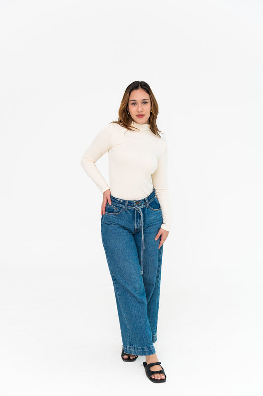 High Neck Long Sleeve in Off-White